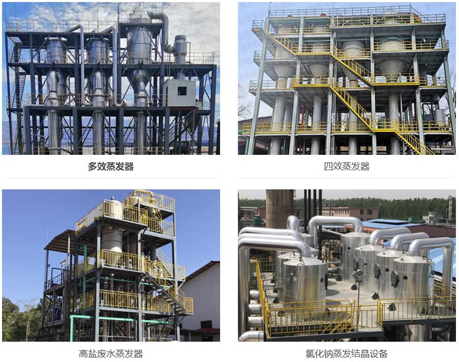 2、多效蒸發器采用獨特設計的結晶器,能滿足連續進料,連續排料的工藝要求,蒸發器的強(qiáng)製循環形成了更好的配合,其內(nèi)部結構使得晶體和清液得到有效的快速(sù)分離;