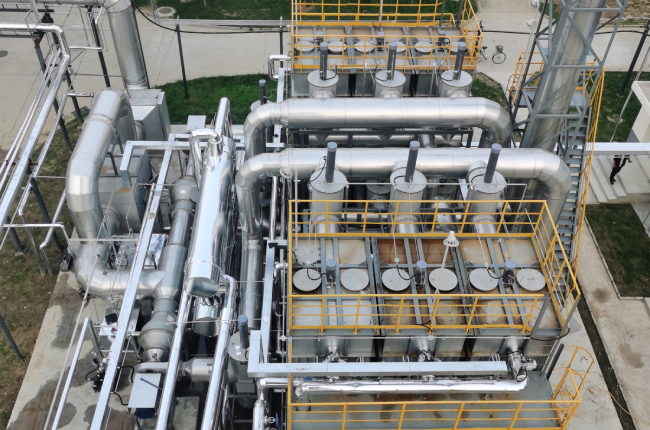 (2)冷凝+吸附技術:冷船法是繼常溫吸收技術後發展的回收技術,單純(chún)使(shǐ)用冷凝法如要達到現有標準(zhǔn),需要將油氣冷卻到-10℃C,這樣(yàng)能缺過高。因此現在常用的(de)技術為冷凝+吸附組合工藝。該工藝(yì)中(zhōng)的冷凝裝置一般經過三級冷凝把油氣冷凝到-75°℃。可回收大部分液(yè)體油品,油氣再進入(rù)變壓或(huò)變溫吸附脫附後達標排(pái)放。